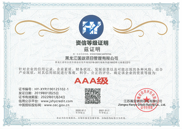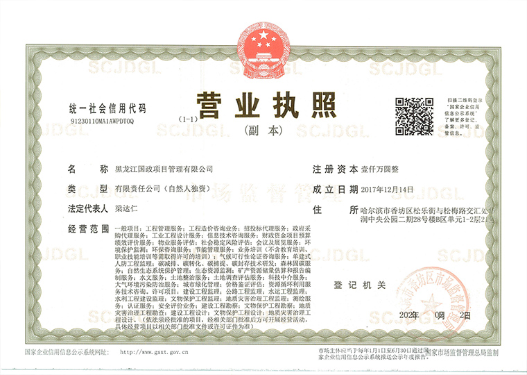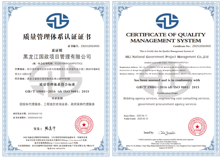 黑龙江国政项目管理有限公司创建于2017年,为黑龙江省知名招标代理企业之一,企业注册资本金1000万元,主要经营工程招标代理、政府采购代理、全过程工程咨询服务、工程项目管理、工程造价咨询服务、工程监理服务等。