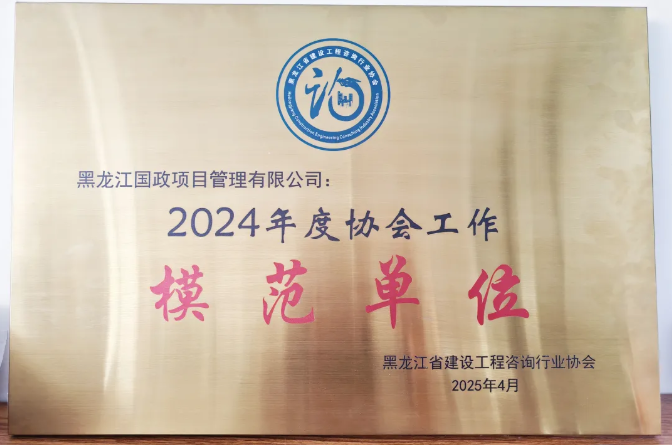 喜报!黑龙江国政项目管理有限公司荣获2024年度黑龙江省工程咨询行业协会工作“模范单位”称号