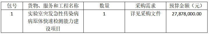 项目名称:实验室突发急性传染病病原体快速检测能力建设项目