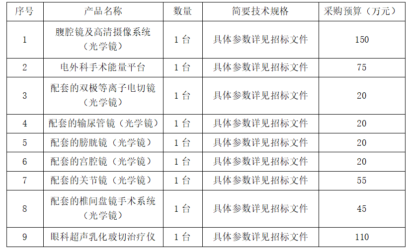 网站首页 > 项目展示 > 国际机电 国际机电 木兰县人民医院外科等科室设备采购 招标项目名称:外科等科室设备采购项目概况:外科等科室设备采购招标项目编号:[230127]GZXMGL[GK]20220001项目实施地点:中国黑龙江省招标产品列表(主要设备): 合同履行地点:采购人指定地点 本项目不接受联合体投标