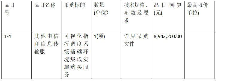 网站首页 > 项目展示 > 政府采购 政府采购 可视化指挥调度系统基础环境集成实施购买服务 项目编号:[230102]GZXMGL[GK]20220002项目名称:可视化指挥调度系统基础环境集成实施购买服务采购方式:公开招标预算金额:8,943,200.00元采购需求:合同包1(可视化指挥调度系统基础环境集成实施购买服务):合同包预算金额:8,943,200.00元 本合同包接受联合体投标合同履行期限:基础建设完成后五年内负责运行、维护维修,五年后移交给分局。